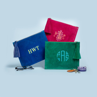 Our monogrammed cross-body handbags, clutches and pouches work well on their own, or make a perfect set with some of our baskets and tote bags.